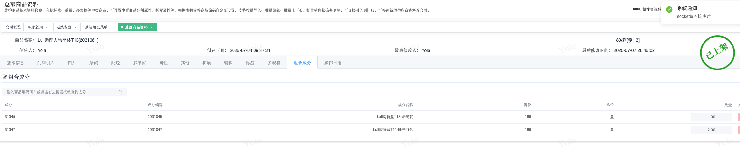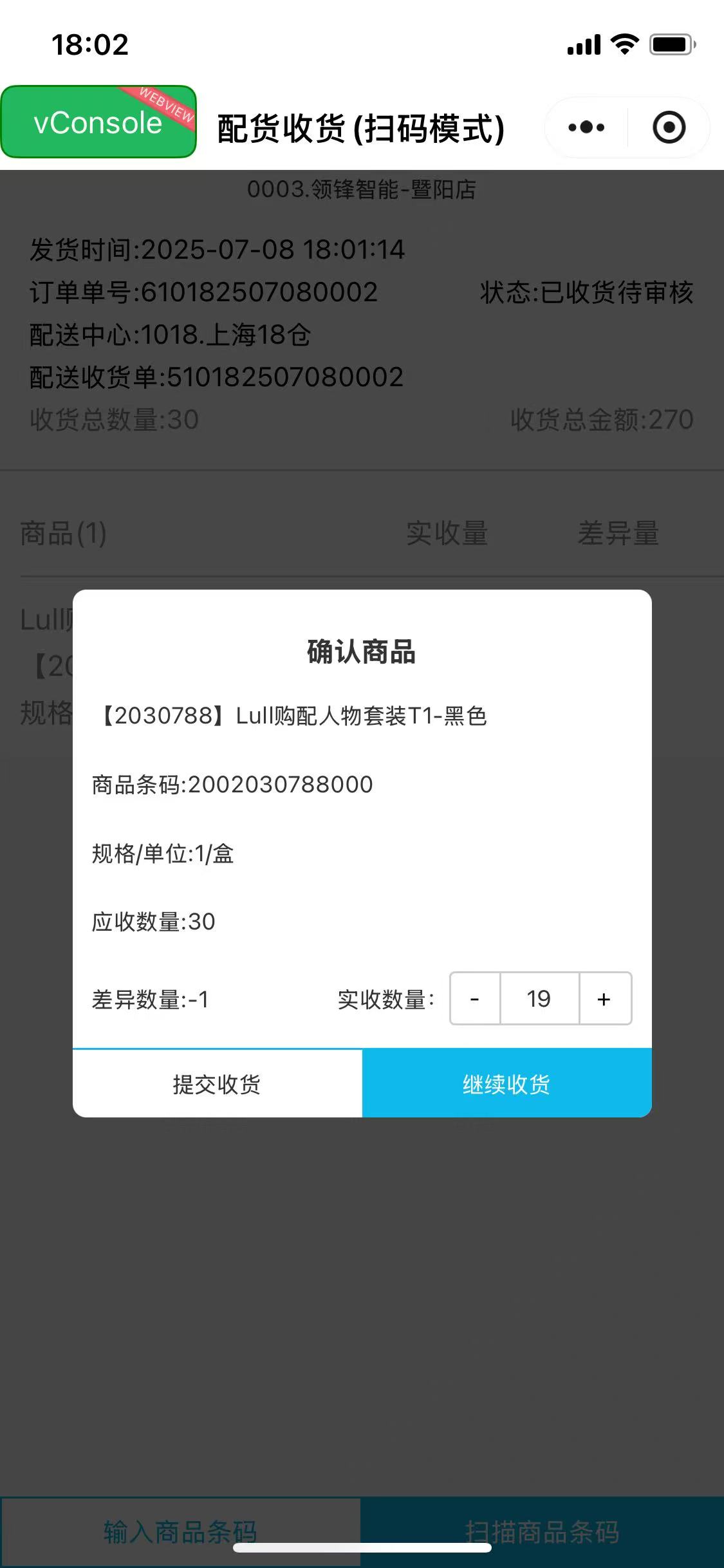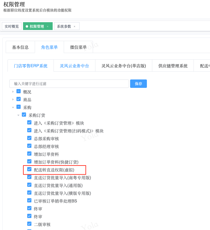 ## ERP后台 ### RT10001/商品管理/总部商品资料:增加组合成分导入、扩展属性导入、第三方链接导入等 - 组合成分导入   - 扩展属性导入    - 第三方链接地址导入   - 扩展属性导出商品   ### 30001/采购/采购订货:参数IsAllProvType开启为1以及「配送转直送权限」可下配送商品的直送订单     ### DC30007/配送/仓库收货: IsAllowLocator 参数关闭不启用储位,详情不允许编辑储位  ### 30050/要货/门店要货:支持直送商品下仓库配送要货单   ### 30051/采购/配货入库:系统参数IsMatchDCOrderAcpt参数值3设置为2可【实收数量修改】      ### B2C20058/卡券/优惠券:根据会员系统参数IsCouponSheetReCheck参数值1为0,不允许已领取过的优惠券制券单下架后再上架    ## 门店管家小程序 ### 配货入库(扫码模式):系统参数IsMatchDCOrderAcpt参数值3设置为2可修改实收数量  ## 配送中心仓库PDA(apk文件) ==注意:PDA请申请单独权限组账号,不可与管家小程序账号相同,系统角色001.门店零售ERP系统; 截止2025年7月,【应用】模块仅开放-【盘点单录入、仓库收货、仓库拣货】==   ### 盘点单录入