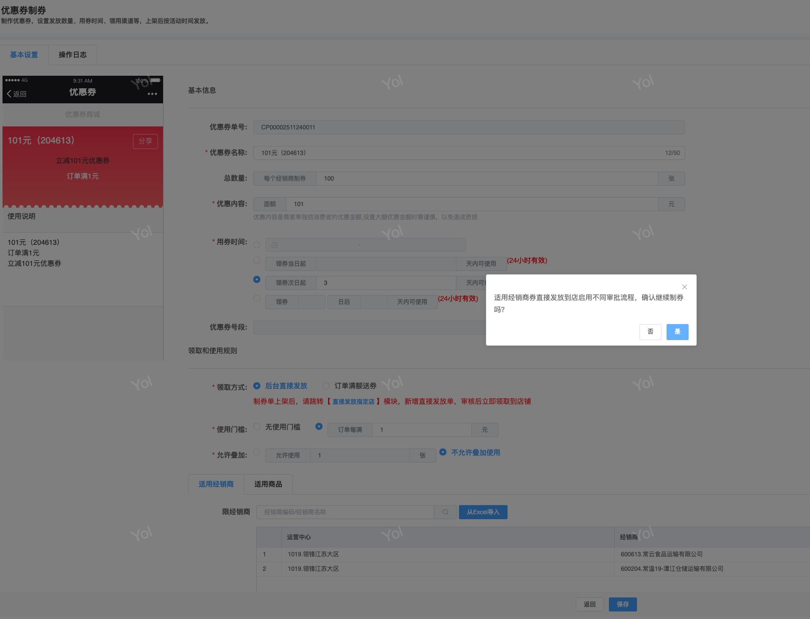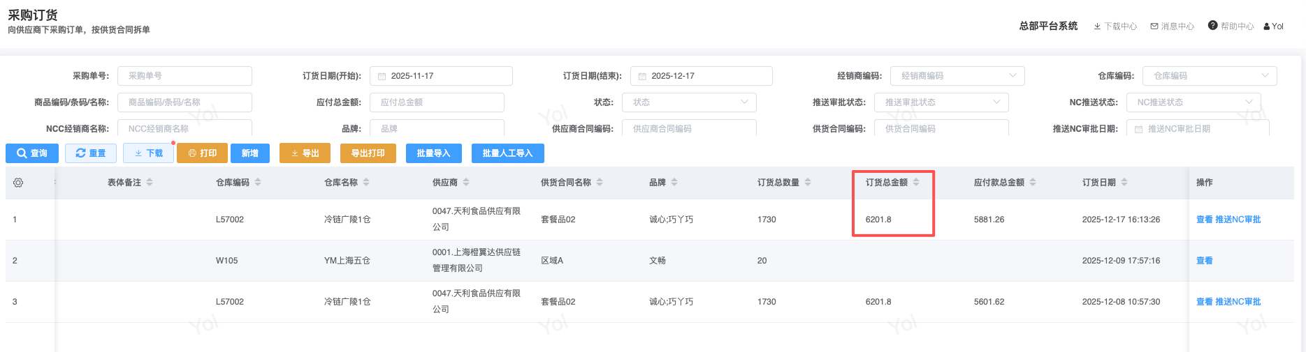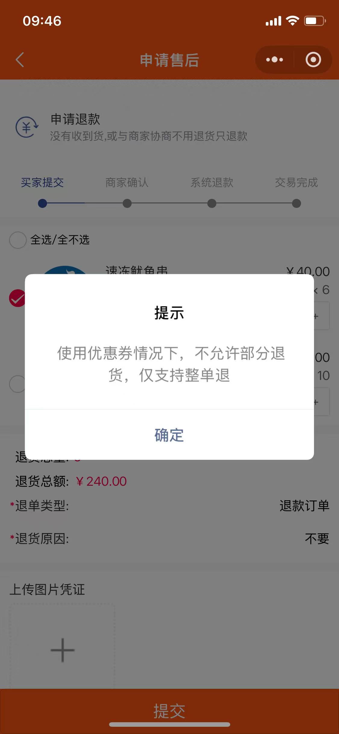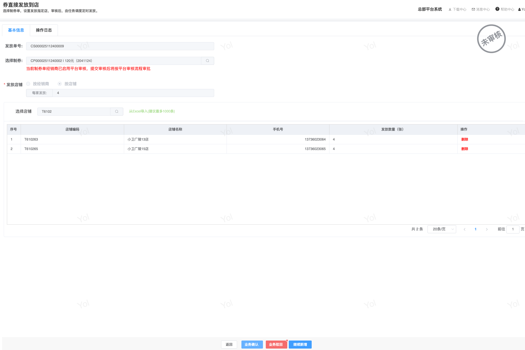 ## B2B平台系统 ### B30024/订单/订单结单配货:详情付款记录增加【订单描述】字段 - A00008/系统/经销商系统参数维护: IsAllowRefund.经销商是否允许用户售后,参数值4,是否允许含券及100%分账时部分退货,默认允许,不允许时,提交售后弹窗拦截 - 批量发货、详情发货:部分发货增加分账100%+券检查弹框拦截提醒:(1019A2025121214002092)经销商系统参数设定,有特殊分账规则和优惠券同时使用情况下不允许部分发货! - B80039/支付报表/分账明细查询:查询结果增加备注字段 - B80013/经营报表/经销商线上订单收款查询:查询结果增加订单描述字段        #### B30003/订单/售后服务:新增保存增加弹窗拦截含分账及券不允许部分商品退货 - 弹窗拦截提醒:使用优惠券情况下,不允许部分退货,仅支持整单退 - A00008/系统/经销商系统参数维护: IsAllowRefund.经销商是否允许用户售后,参数值4,是否允许含券及100%分账时部分退货,默认允许,不允许时,提交售后弹窗拦截   #### B30028/订单/销售预售单:增加弹窗拦截-百分百分账不可使用优惠券 - 弹窗拦截提醒: 实付金额不够支付百分百分账,百分百分账商品不支持使用优惠券,请加购商品后重新提交订单!  #### 任务调度-B2B订单子单商品明细券分摊金额计算:销售及销退排除分账100%商品分摊  ### 券到店按经销商审批流程对接 #### 1、A00008/系统/经销商系统参数维护:IsSendCouponCheck经销商券直接发放是否启用平台审批,默认不启用  #### 2、90032/系统/审批流程设置:配置平台审批流程  #### 3、F10003/营销/优惠券制券:新增、修改操作增加提醒:适用经销商券直接发放到店启用不同审批流程,确认继续制券吗?  #### 4、F20006/营销/券直接发放到店:根据所选制券单的经销商,以及经销商参数(经销商券直接发放是否启用平台审批),未启用的进行经销商直接审核,已启用的则按审批流程配置提交审核    ### B00058/商品/经销商套餐商品维护:修复明细2000000商品问题  ### C20001/采购/采购订货:修复首页订货总金额问题  ## 订货端 ### 分账支付订单及补款订单-支付服务增加订单的交易备注   ### 提交订单、申请售后:增加分账+券检查弹窗拦截 - 提交订单:部分商品不支持优惠券,实付金额不满足优惠券,请加购商品重新提交订单 - 申请售后-提交:使用优惠券情况下,不允许部分退货,仅支持整单退