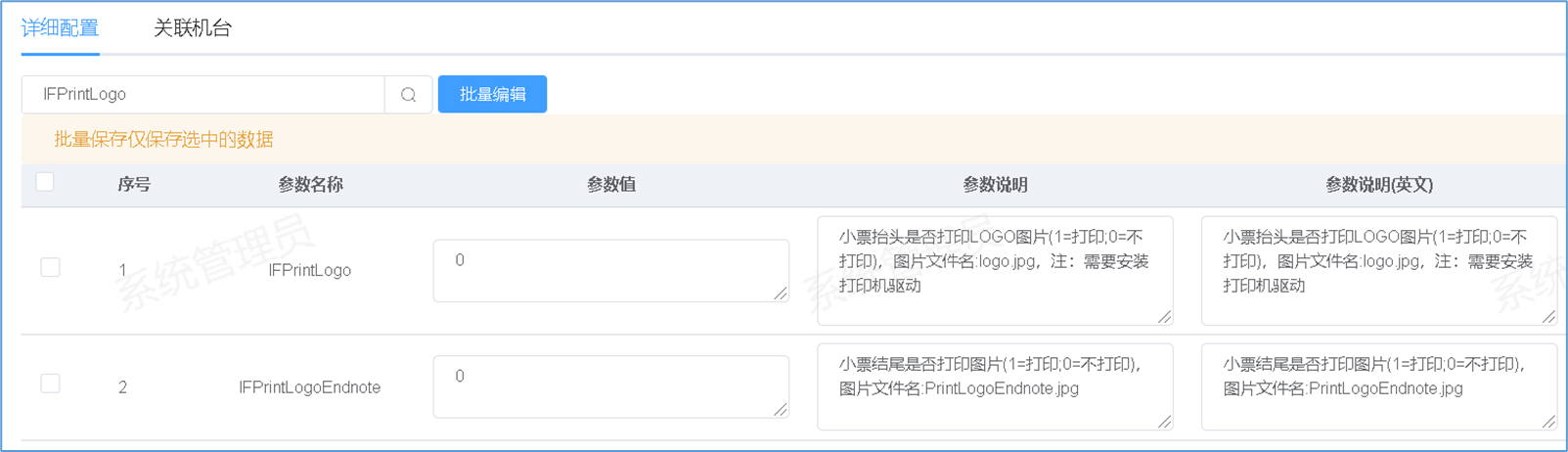 配置打印小票图片-功能介绍 收银机结账的小票支持打印自定义图片,小票抬头和结尾均可以设置一张图片打印。 配置打印小票图片-流程图  配置打印小票图片-功能路径 新零售管理后台->销售->POS配置->POS基本信息配置  配置打印小票图片-操作流程-参数设置 1.进入新零售管理后台->销售->POS配置->POSINI组参数设置: 2.修改参数值1为开启:小票抬头是否打印:IFPrintLogo 小票结尾是否打印:IFPrintLogoEndnote 注:打印小票图片必须安装小票打印机驱动  配置打印小票图片-操作流程-发布图片 1.进入POS基本信息配置,点击小票图片的编辑按钮 2.上传要打印的小票抬头logo和小票结尾图片 3.最后点击确认按钮即可,POS机重启后会自动更新
