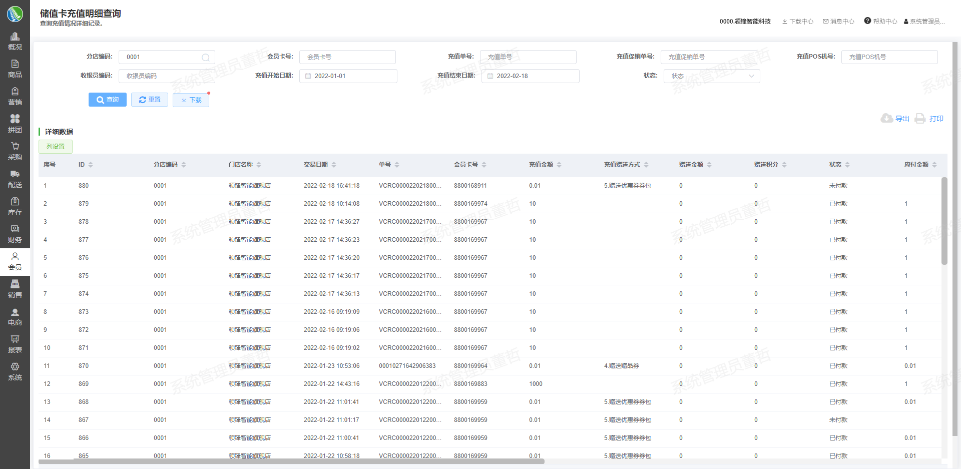 储值卡充值记录查询