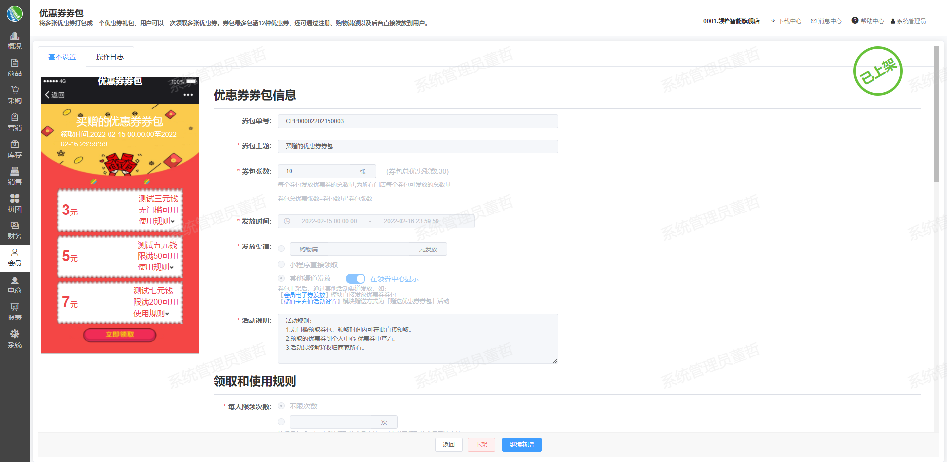 如何后台发券进行会员动销