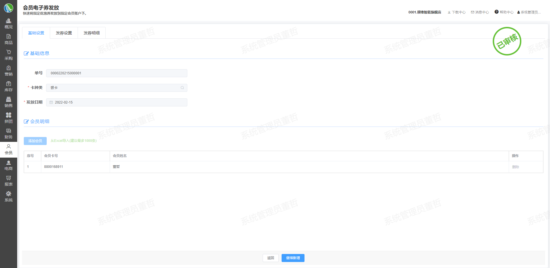 会员电子券发放