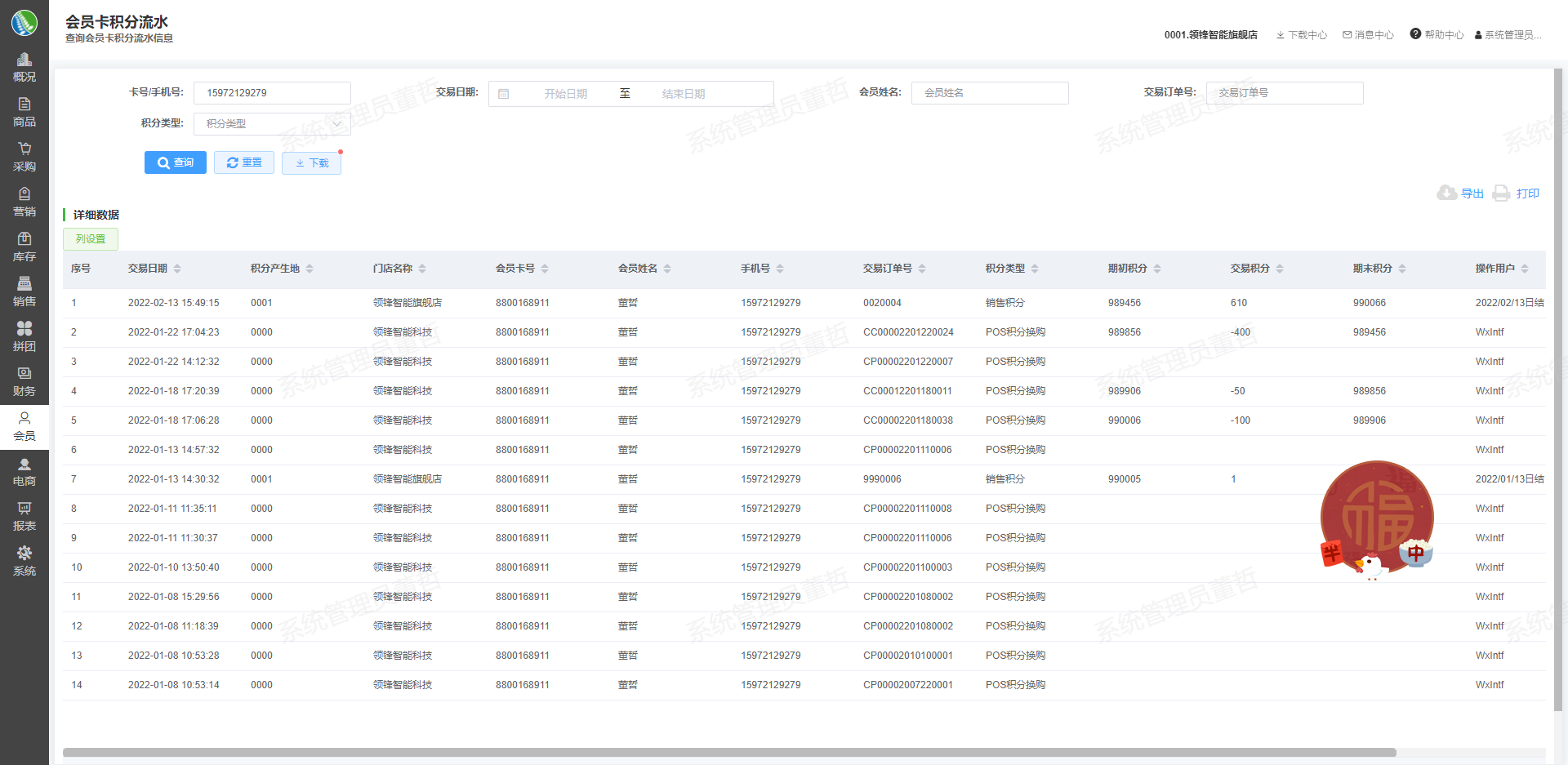 会员积分变动流水查询