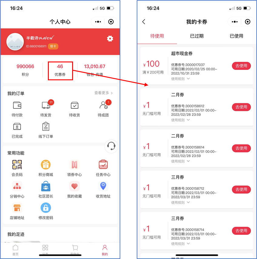 如何为付费会员开卡送多种优惠券