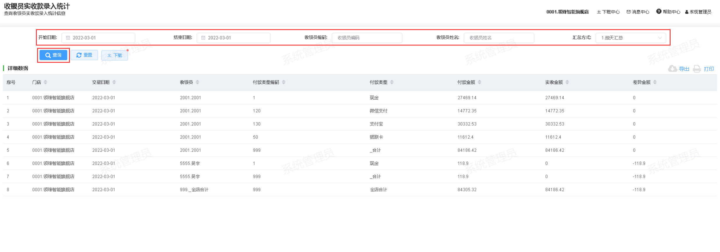 如何查看收银员实收款录入差异统计