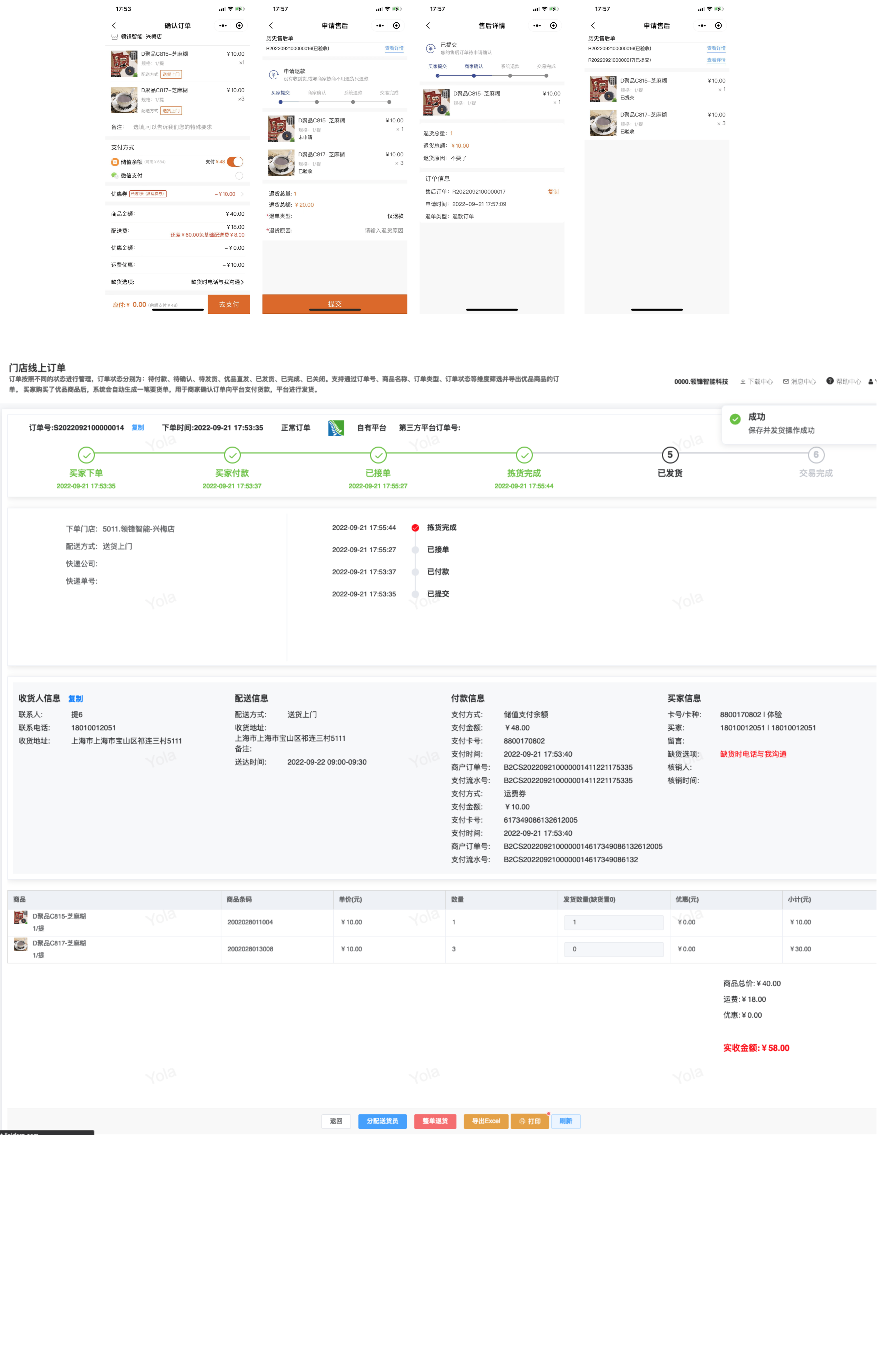 ## ERP更新 1. 商品/总部商品资料:支持BOM商品设置多条码、重量或计量商品支持生成店内码 - BOM商品可设置多条码   - BOM清单为空时,可更改为其他商品种类,否则不可更改   - 重量或计量商品支持自动生成店内码  2. 会员/卡券/优惠券:使用说明支持自定义设置  3. 会员/会员管理:批量导入-导入成功的会员不发放注册活动券; - 后台批量导入会员不注册活动券   - 商城注册会员仍正常送注册活动券  4. 会员/营销/会员价限购:新增/修改及上架时,增加未引入商品门店商品提醒  5. 库存/BOM加工:新增模块,维护BOM商品加工单,审核后调整BOM库存、配方物料库存  6. 模块升级,修复功能操作问题,如基础资料/打印价格标签|导入无效问题、库存/库存调整|未审核单据详情删除无效问题、系统/审批流程|模块升级后不显示问题、营销/营销/线下返券收券|修复返券商品或收券商品添加重复商品问题等 ## 商城更新 我的-我的订单:售后/退款,支持部分商品单个或多个退货及多次退货。 - 已付款|后台拣货编辑后,用户发起售后|售后服务中可查看到已有的历史售后单  - 已发货|后台分配送货员配送中,用户不可退货  - 已签收|用户确认收货或后台配送完成,用户发起售后|售后服务中可查看到已有的历史售后单