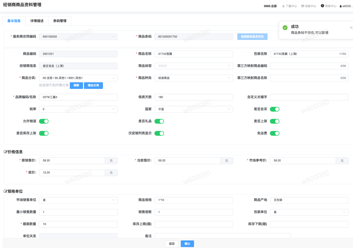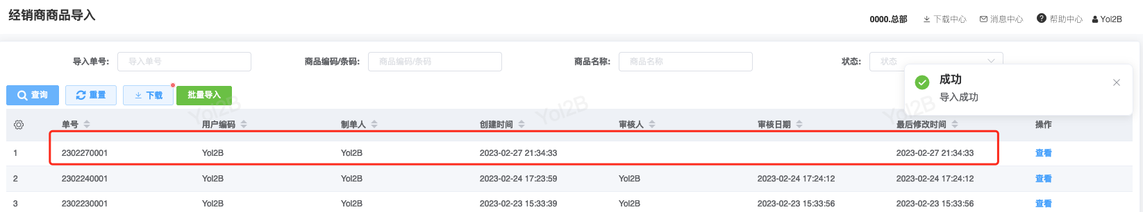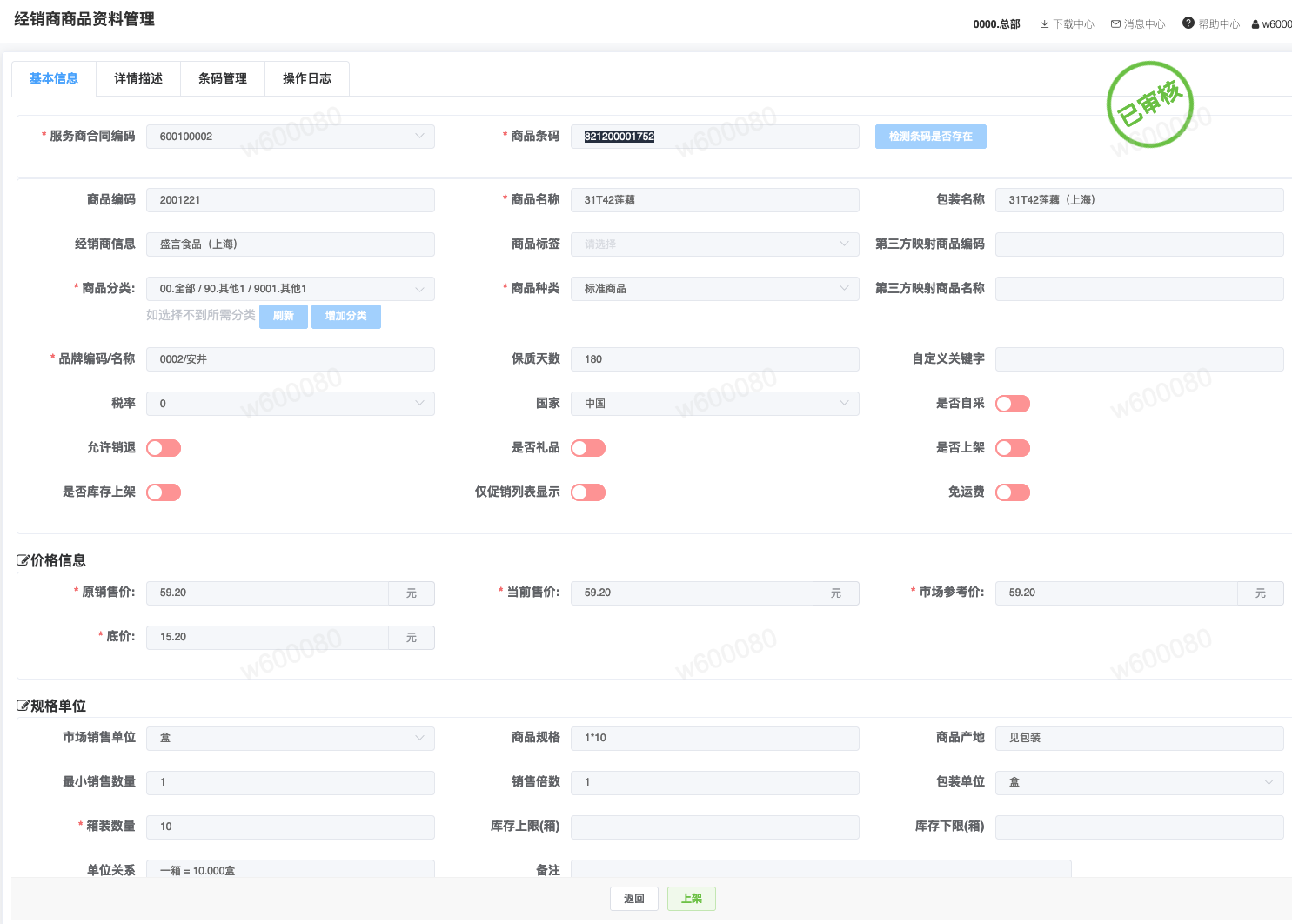1.3-资料提报|经销商商品提报流程 ## 一、创建仓库 ### 路径:经销商/经销商仓库资料 点【新增】,填写仓库资料,确认后,即新增仓库成功。  ## 二、创建及审核合同 ### 路径:经销商/经销商合同管理 ==注意:经销商的每个仓库需创建不同合同,即按仓库+商品维护经销商合同。== 1. 点【新增】,填写基本信息,如「库存自动上架」开启,即采购入库后,即自动同步上架线上库存数量。 2. 确认后,点【修改】在【仓库设置】点【增加】,选择仓库,填写费用信息,无费用,可设置为0. 3. 确认后,即新增经销商合同成功。 4. 资料确认后,点【审核】,新增经销商合同审核生效。   ## 三、导入经销商商品 ### 路径:经销商/经销商商品导入、经销商端|商品/经销商商品导入 1. 点【批量导入】按表格格式,填写商品数据,可自定义商品编码,选择文件,确认上传服务器后,即成功批量导入商品数据。 2. 点【查询】,查看详情,点【审核】即可导入并审核经销商商品资料。    ## 四、新增、审核及上架经销商商品 ### 路径:经销商/经销商商品资料管理、经销商端|商品/经销商商品资料管理 1. 点【新增】,选择经销商合同、填写商品条码,点【检测条码是否存在】,如已存在,将自动导入商品库资料; 2. 填写完成后,确认后,即新增商品成功。 3. 资料确认完成,点【审核】,即同步商品资料到商品库,状态为已审核。 4. 点【上架】,即可发布商品到订货端。 ==注意:资料、价格变更时,经销商商品同步订货端,由任务调度定时同步,如需立即执行 [如何立即同步已更新资料到订货端(搜索引擎刷新) ](https://help.linkfern.com/project-16/doc-646/ "如何立即同步已更新资料到订货端(搜索引擎刷新) ")==