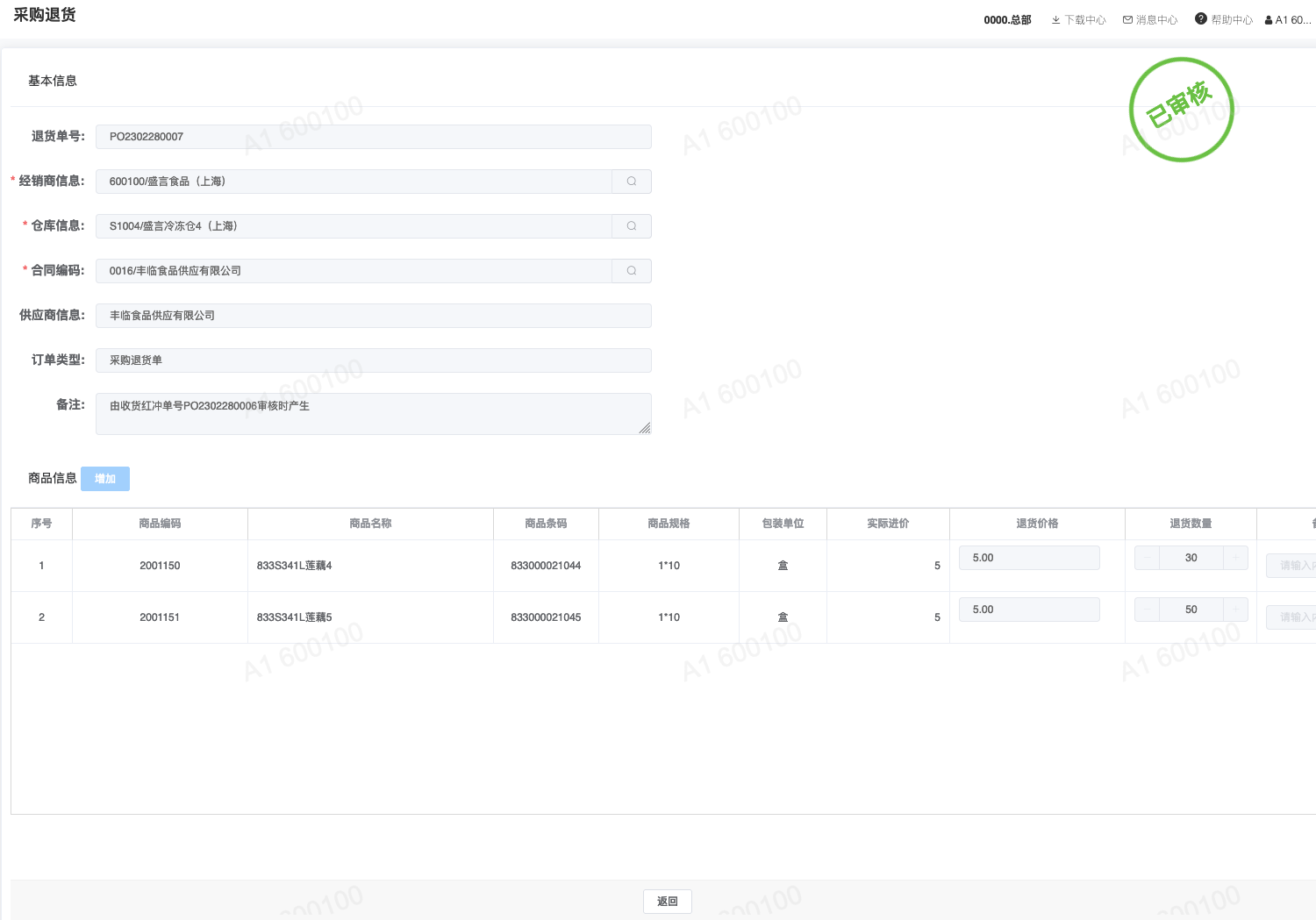 3.1-采购&库存|经销商采购&线上库存更新流程 ## 一、创建及审核供应商 ### 路径:经销商/供应商/供应商资料管理 注意:库存自动上架的经销商合同商品,必须维护供应商及供应商合同信息。 点【新增】填写供应商信息,确认后,点【审核】,即可完成供应商的创建及生效。  ## 二、创建及审核供应商合同 ### 路径:经销商/供应商/供应商合同管理 1. 点【新增】,填写合同基本信息,「商品设置」中点【增加】,选择供应的经销商合同商品。 2. 确认后,点【审核】,即可完成供应商合同商品设置。 3. 如有增加或变更,点【合同变更】,重新调整信息后,再次审核即可。   ## 三、创建及审核采购订单 ### 路径:经销商/供应商/采购订货 点【新增】,填写采购单信息,确认后,点【审核】,即可完成采购下单。  ## 四、创建及审核采购收货单|增加库存 ### 路径:经销商/供应商/采购收货 1. 点【新增】,选择「采购单号」,即可获取采购下单信息,确认收货信息后,点【审核】,确认即可收货完成,更新库存增加数量。 2. 注意:「生产日期」如未填写,将默认创建收货单当日。  #### 查看商品批次|经销商/库存/经销商商品批次查询  ## 五、创建及审核采购收货红冲单|更新库存 ### 路径:经销商/供应商/收货红冲 点【新增】,选择原采购单,填写正确价格与数量,确认后,点【审核】,确认即可收货完成,更新库存数量。  ## 六、创建及审核采购退货单|扣减库存 ### 路径:经销商/供应商/采购退货 点【新增】,填写退货信息,确认后,点【审核】,确认即可退货完成,更新商品库存扣减数量。