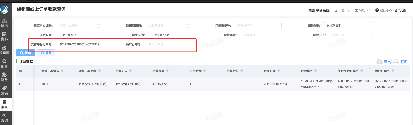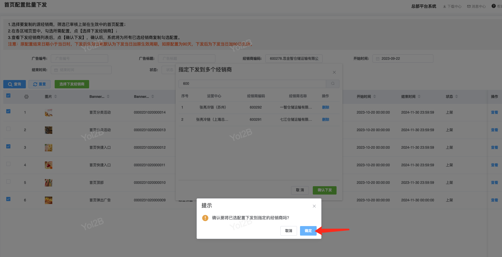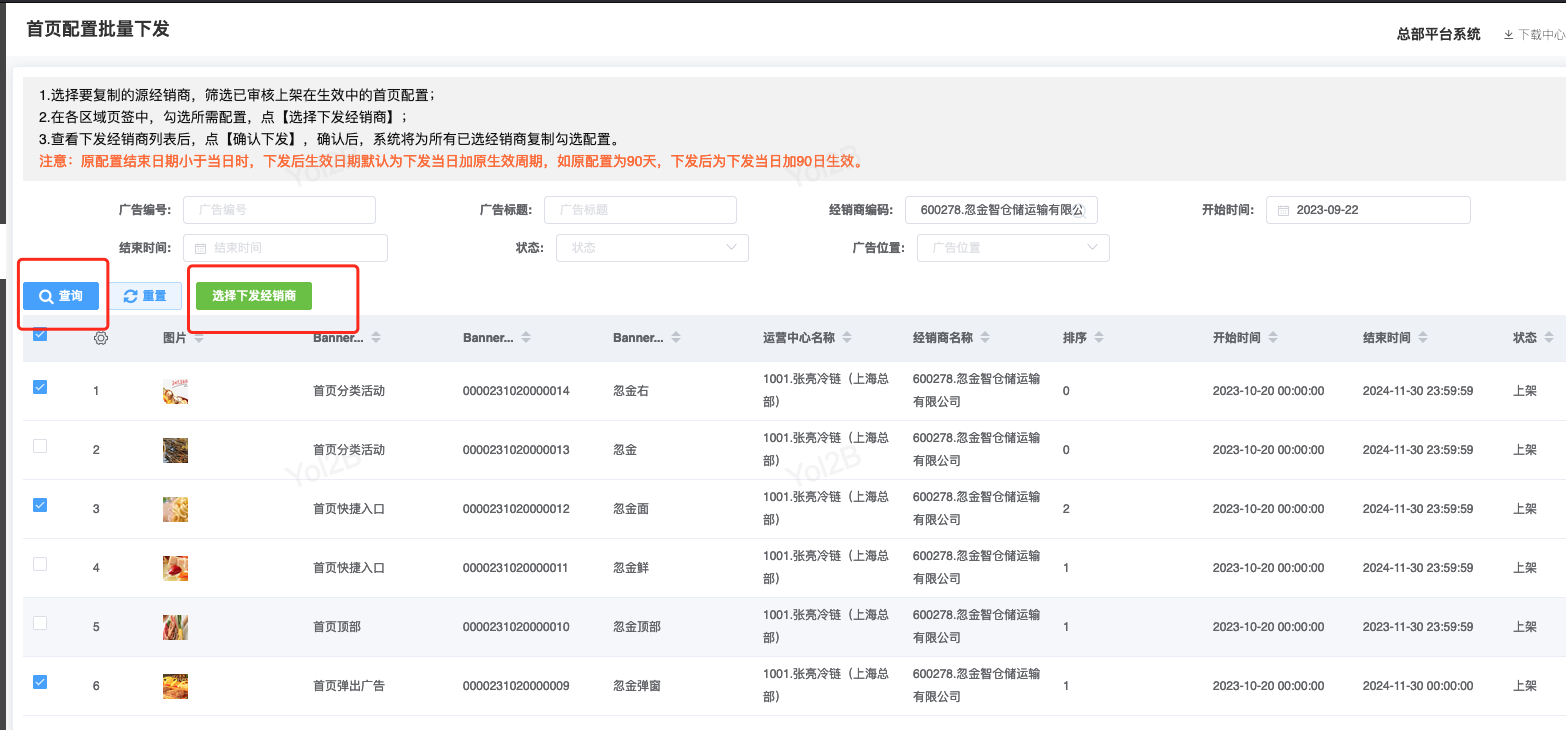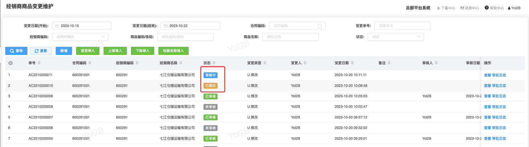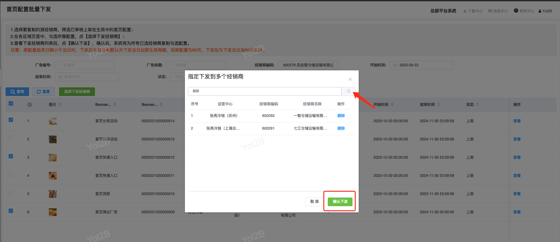 ## B2B平台及订货端|20231023版本 ### B2B平台系统 #### 1.总部-配置/首页配置批量下发:新增模块,用于批量勾选下发到多个指定经销商      #### 2.A10006/资料/商品资料管理:指定下发、指定下发到多个合同-确认提交-增加处理同步更新自营属性   #### 3.B00008/商品/经销商商品变更维护:首页查询结果调整、详情多单位显示问题 - 首页查询结果按最后修改时间降序、状态「审核中、已提交」状态标签区分颜色显示 - 修复详情明细无多单位显示开启问题  #### 4.B00055/商品/经销商自采商品提报:批量导入增加「第三方映射单位」(自定义字段1)字段  #### 5.B20003/库存/库存更正:详情明细增加【线上库存锁定】显示  #### 6.T20002/商品销售/商品销售按客户汇总:增加【是否自营】查询条件及结果  #### 7.D10002/加盟商/加盟商资料、D10003/加盟商/加盟店管理:审核为认证失败后,授权该门店的B2B用户不做冻结处理,仅全部解绑即可 #### 8.B80032/订单/待退款任务表:增加【原订单主单号、原订单子单号】查询条件及结果字段  #### 9.资料更新增加微服务处理实时同步到订货端,涉及经销商商品资料、营销等模块 A10006/资料/商品资料管理:全量下发、指定下发 B00008/商品/经销商商品变更维护:ACGoodsAlterCheck 复核-审批流程终审 B20003/库存/库存更正:审核 营销模块:审核、终止业务 B10022/营销/批量折扣 B10023/营销/包装折扣 B10024/营销/组合折扣 B10027/营销/满减促销 B10028/营销/换购促销 B10026/营销/限时秒杀 #### 10.B80013/经营报表/经销商线上订单收款查询:查询条件增加「支付平台订单号、商户订单号」筛选  ### 订货端 #### 1.B2B小程序端:订单详情-一个换购活动有多个换购商品,详情显示重复商品问题 <img src="https://help.linkfern.com/media/202310/2023-10-22_215527_4701740.004951816660770714.png" width="200">