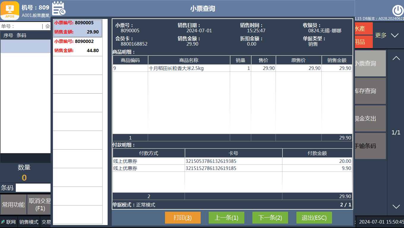 如何重打印历史交易小票