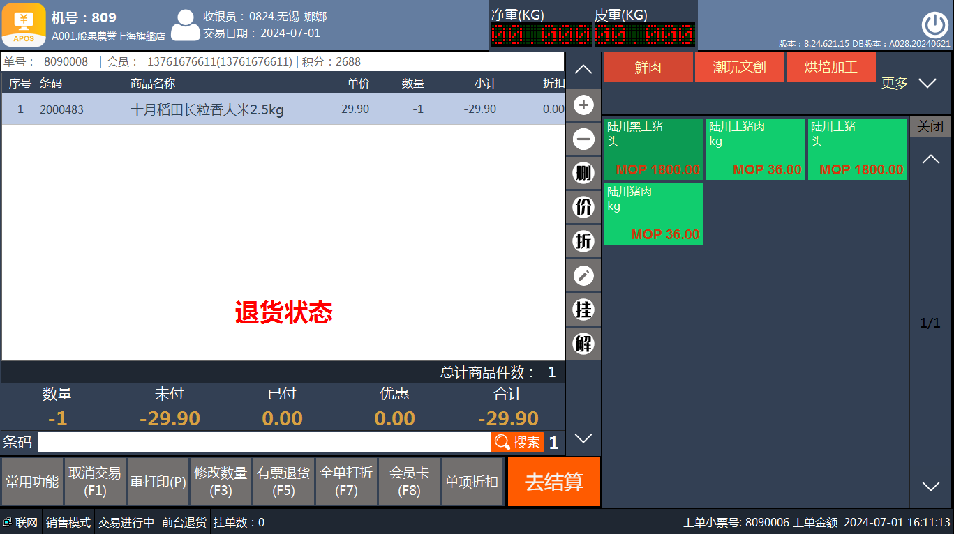 如何进行贵宾免单和退货(销售单转换)