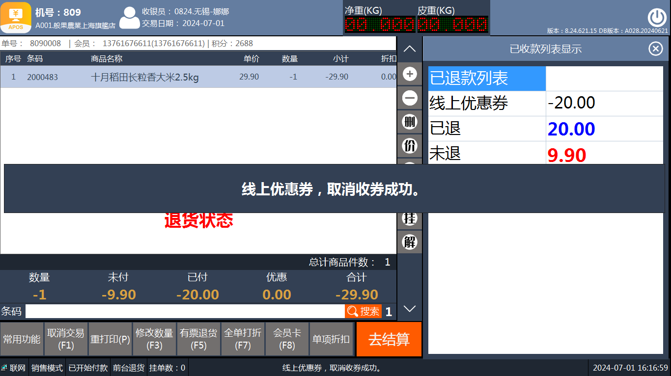 如何取消只支付部分金额的销售单(取消付款)