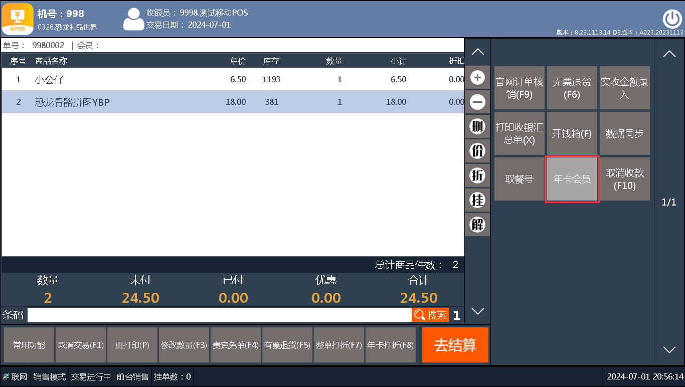 收银-年卡打折
