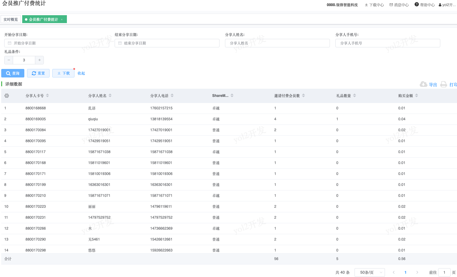 会员分享推广统计报表