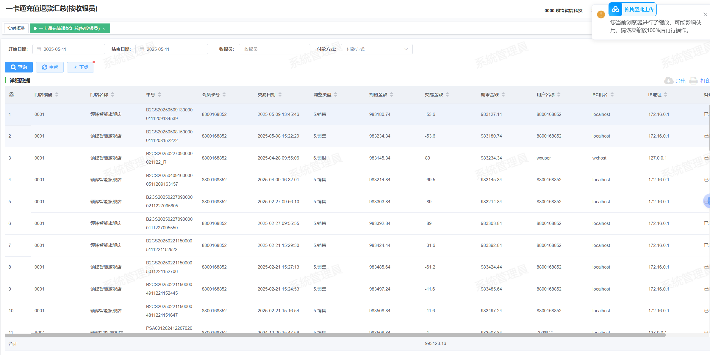 一卡通充值退款汇总(按收银员)